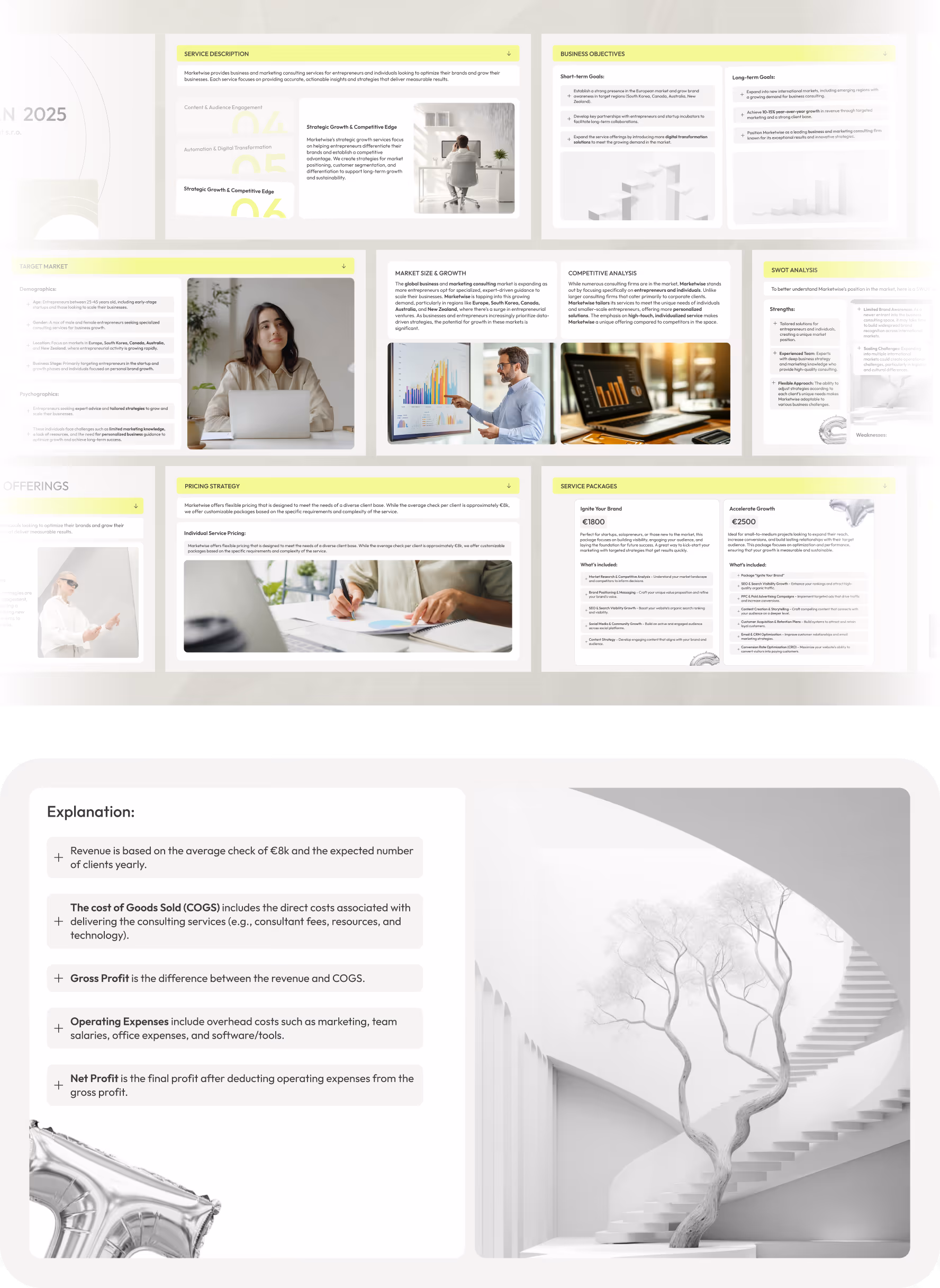 Marketwise created a modern pitch deck and business plan built on clear strategy.